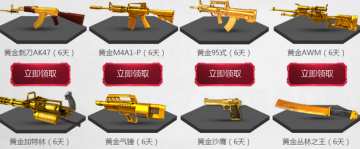 2.活动期间,10月26日起新注册用户,每日登录游戏即可领取一把黄金武器,每天每个账号仅可体验一把黄金武器,每种黄金武器都可领取1次;