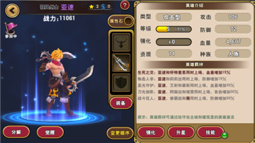 战队成型之后就要进行是时候对英雄进行培养了,《魔龙战记》的英雄培养主要有三种:强化、升星和技能升级。强化需要消耗强化石和金币,成功之后可以提升英雄的基础属性,当然强化等级越高强化石的消耗也越多。升星则需要使用相同星数的英雄和波球碎片,升星不仅可以提升属性,还能让你的英雄形象焕然一新。技能提升也是相当重要的,消耗灵魂石就能提升技能等级。因为战士作为战队的冲锋角色,所有一开始应当着重培养亚速,站稳了才会有输出。