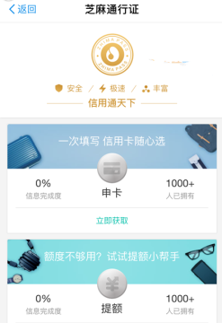 首先打开芝麻信用首页中的信用管理模块,我们可以看到暂时只有信用卡申请和提额两个通行证可以申请获取。
