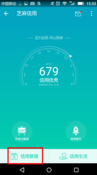 2、进来之后在芝麻信用页面下方点击进入到【信用管理】模块,如图所示。