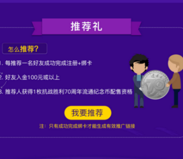 3、推荐人获得1枚抗战胜利70周年流通纪念币配售资格。