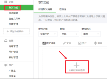 没有什么问题以后,我们发布文章时候从素材中选择编辑的图文发送即可。