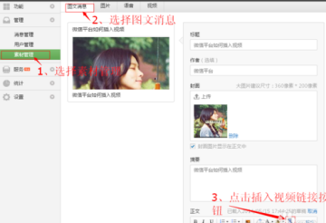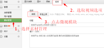 即:素材管理---图文消息---插入视频---添加视频链接---确认---保存。不过目前只支持腾讯在线视频。