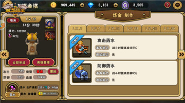 《魔龙战记》中有一种方法可以让你的英雄瞬间增加战斗力,那就是“嗑药”,简单的说就是在炼金塔中制造BUFF药水,其中有攻击、防御、移速和暴击等药水,让你对抗BOSS不再吃力。当然还有金币、经验药水帮助你快速获取金币和经验。当你的英雄身披各种BUFF之时,想必那些痛揍过你的BOSS也只有挨打的份了。勇士,记得药不能停哦。