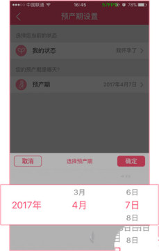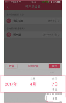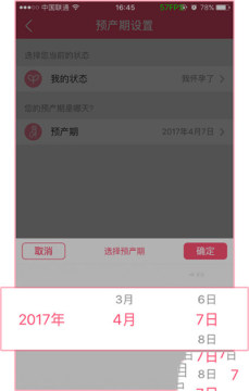 2、在“预产期设置”界面中,选择正确的预产期即可。