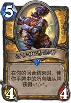 5费,身材4/4,特效:在你回合结束的时候,使你手牌的所有随从获得+1+1的效果。