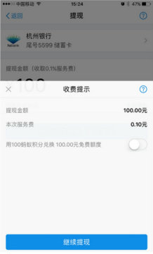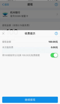 蚂蚁积分兑换支付宝提现免费额度的比例: