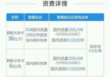 蚂蚁大宝卡超出套餐国内流量1M-100M时,按0.1元/M计费,101M-1024M时不计费,即10元/GB;