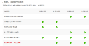 3)服务公众号:比企业公众号有更严格的认证机制;定位为小型平台,能够完成多功能的服务,能够在一定程度上进行自主开发;