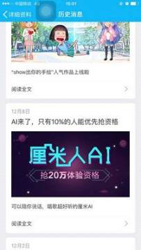 想要体验微软小冰和QQ厘米人结合的形象,用户可以关注“QQ厘米秀”手Q公众号,输入关键词“厘米AI”,就有机会通过答题获得体验资格。在互动中,智能“厘米人AI”会根据用户不同的指示,做出不同的反应,用户还可以让小人唱自己喜欢的歌,还可以讲段子,讲故事等。