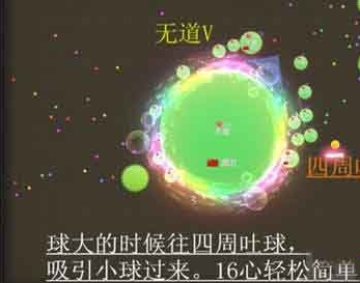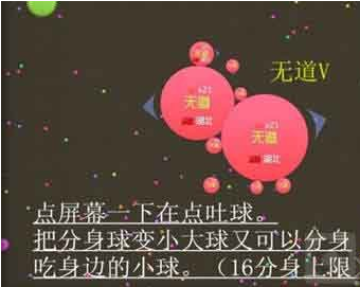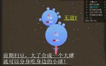 球球进去到能碰刺的时候旁边有大球与小球在身边的时候,这时候就需要吐球分身吃小球跑路。这样就可以走在吃些豆球就变大了。