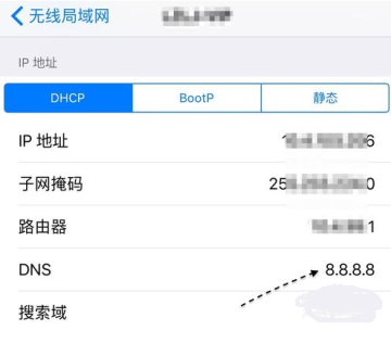 接下来我们把 DNS 一栏更改为 8.8.8.8 这个地址,这个 DNS 地址是由谷歌提供的全球都适用的,可以提高访问苹果更新服务器的速度。