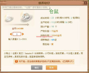作者:佚名 人气:0qq牧场又推出最新动物,“仓鼠”很可爱的小动物。