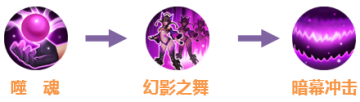 加点推荐:噬魂>幻影之舞>暗幕冲击,主升【幻影之舞】技能,副升【暗幕冲击】技能,有【噬魂】可以升级时则升级【噬魂】