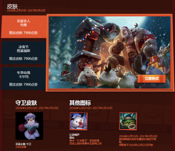 圣诞节皮肤活动时间是:2016年12月15至2017年1月10日。