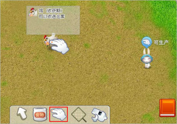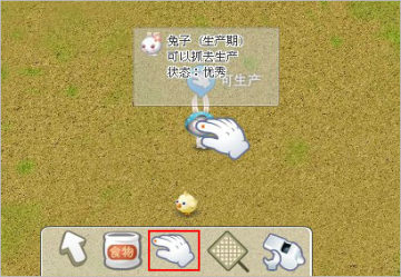 操作方法:点击QQ牧场下方工具栏“手”的图标,放到“戴蓝头巾的兔子”身上,按住鼠标左键不放,