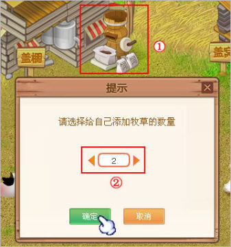 操作方法:点击饲料机,输入牧草的数量,点击“确定”即可;