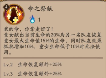 这是童女的技能1级是回复15%,满级之后提升2次,每次额外加25%。