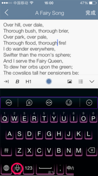 然后我们来试着用语音进行输入,如笔者想打出”呵呵“两个字,只需点击那个麦克风按钮,就会跳转到语音输入界面(苹果系统权限未开放,安卓用户可直接原界面输入),再按一下麦克风按钮对着它讲话就好,识别率很高,基本上不错一字(也可以识别方言)。