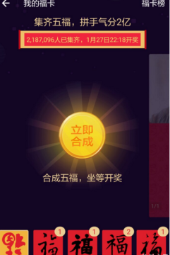 作者:腾牛小编 人气:0支付宝五福活动已经开始了,相信很多的小伙伴们已经集齐了五福并且合成了,那么支付宝五福可以无限制合成吗?支付宝五福第二轮什么时候开启?文中小编为大家带来相关解答。