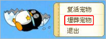 友情提示:如果企鹅宝贝死亡了,请使用鼠标右键点击企鹅身体,选择“埋葬宠物”将宠物埋葬。