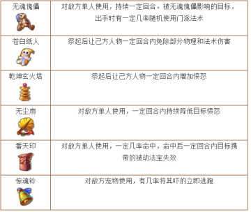 战斗中使用法宝,需要占用人物1回合出手。使用法宝不受封印物理、法术、特技状态的限制。