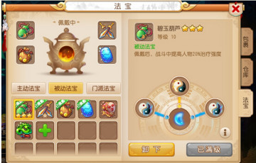 法宝炼化后的初始等级为1级,最高为10级。等级越高法宝的效果越好。