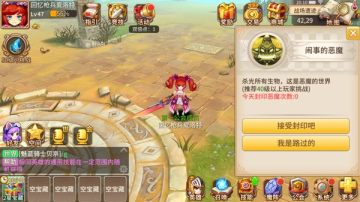 解除封印的恶魔会四处寻衅闹事,玩家可单人或者组队前去封印它们;每天前30次奖励丰厚!