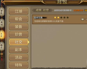 结拜兄弟系列。全部完成可以获得称号,五湖善缘客。