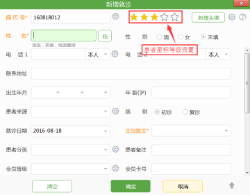 四:患者星标印象等级设置。通过设置型标可初步形成一个患者印象。例如消费水平、重要程度等。
