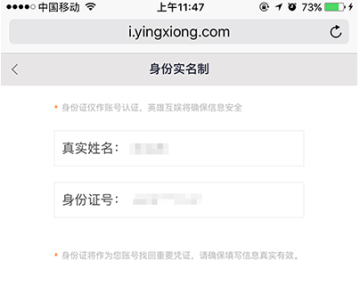 英雄互娱实名认证:http://i.yingxiong.com/pass/loginrealname