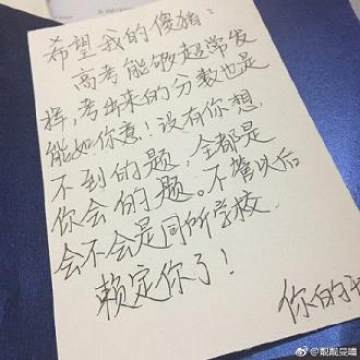 我不知道怎样说大家能有最强烈的感受,只是,这只是人生的第一个大部分,是多数人不能够有其他选择的一部分,往后,又有人生的其他大部分等着你,却多数能够被以多种方式去迎接和选择。最难做到的是不忘初心,最容易做到的是堕落和心甘情愿地失败和麻木地失落。 祝大家金榜题名