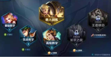 进去游戏-对战模式-(底部)训练营,完成新手训练营任务。前两个大概就有5500金币了,第三个有2000,第四个有1000,总共8500,第五个妲己皮肤,可以先不做。
