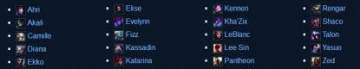 在血月杀模式中,只有21名“穷凶极恶”的英雄可供召唤师使用,在该模式中将有10名额外的周免英雄供选择。他们分别是阿狸、阿卡丽、卡蜜尔、黛安娜、艾克、伊莉丝、伊芙琳、菲兹、卡萨丁、卡特琳娜、凯南、卡兹克、乐芙兰、李青、潘森、雷恩加尔、萨科、泰隆、亚索、劫,外加此次版本新添刺客——锐雯。
