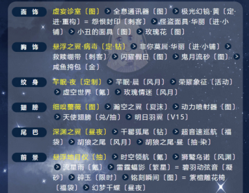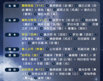 今天的搭配比较……贵重没有图上衣服的小伙伴,试着用配装器补一下 ,选关卡、下方找相应部位、看排序就行饰品缺很多的,就只带9个饰品~