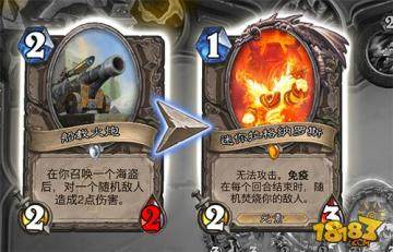 开场有个小螺丝在场,有几点攻击力就会对敌方的随从造成几点伤害,然后每烧死一个随从会增加1点攻击力。小螺丝的归属权不是一个人的,会来回移动。(就跟双人乱斗的BOSS一样)