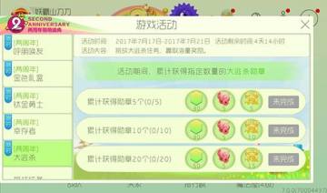 累计获得勋章20个,可得彩豆*50,糖果炮弹*5,两周年盛典活动集字*15;