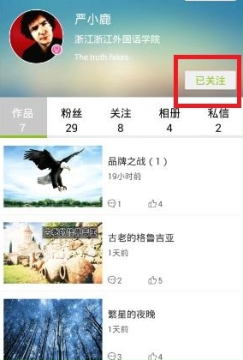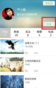 3、点击后就会看到对方的具体信息,同时你也可以点击“关注”进行关注哦