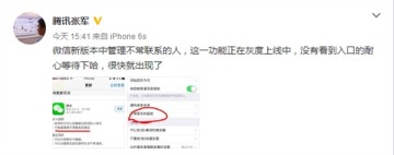 对此腾讯公关总监张军在微博表示,微信新版本中管理不常联系的人这一功能正在灰度上线中,只有部分人可见,没有看到入口的请耐心等待,很快就出现了。