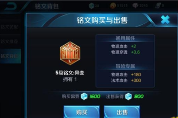 红色铭文:异变,物理攻击+2、物理穿透+3.6