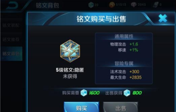 蓝色铭文:隐匿,物理攻击+1.6、移速+1%