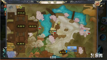 下一个,唐门,这个位置不是很好找,小编随图附个坐标图。到达指定位置后,走到最中间的两根柱子上