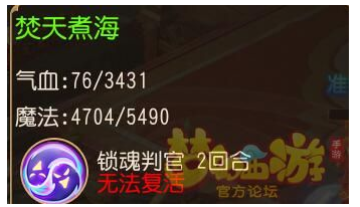 解除异常状态:解除一个友方单位的异常状态,测试之后感觉和水清差不多,可以解失心、定身、六道一类,但是地府的大的特效,也就是锁魂判官是无法解除的。