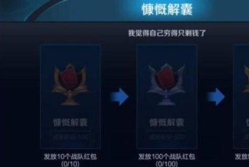 慷慨解囊:穷的只剩下钱了,那就发红包呗,发出10个~100个~500个战队红包是该成就的任务。