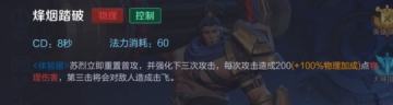 苏烈撞人的时候如果碰到地形就会停止,敌方目标也会受到额外的伤害和眩晕,二技能还可以撞塔= =所以撞人一定要撞到墙上去!这个技能跟达摩哥哥大招很像。