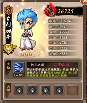 6.橙卡性价比第六,最近豹子开始流行,豹子的牵绊4个全是加敏捷的,作为靠敏捷吃饭的豹子,也没谁了...开场一个技能秒脆皮有没有,和大炮一样叠加属性,敏捷属性。不过3星卡,养起来也是有些小费劲,不过勉强养吧。