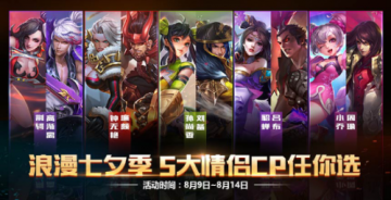 作者:网友整理 人气:0一年一度的中国传统情人节七夕马上就要到了,作为一款拥有着一亿多女玩家的手游,王者荣耀当仁不让的站在了情人节虐狗的前线,甚至很多情侣都是因为王者荣耀而结缘走到一起。那么在七夕这样一个秀恩爱的日子里,如何加入游戏元素呢,最简单不过的当然是在游戏内选上一组官配的CP英雄,一起上分啦!