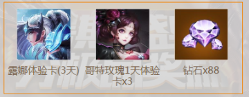 召唤师们在游戏中获得“谁人不识君”勋章,即可领取露娜体验卡3天、露娜哥特玫瑰体验卡3天、88钻石!天降好礼,错过要等明年!