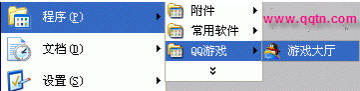 程序菜单进入法:除了桌面快捷方式外,程序菜单中也会添加QQ游戏大厅程序组,玩家只需点击左下脚的[开始]按钮,按照“程序”→“QQ游戏”→“游戏大厅”的顺序,即可进入QQ游戏。