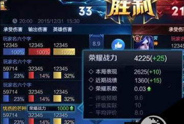 详细分数和评分因子在结算/数据切页,荣耀战力将是未来最硬的硬通货!而高等的荣耀战力值还将获取各级荣耀称号,分别是在召唤师所在的区/县、城市、省份、全国范围进行评比,获得对应的称号,就是你在该区/县、城市、省份甚至全国该英雄水平的排名!